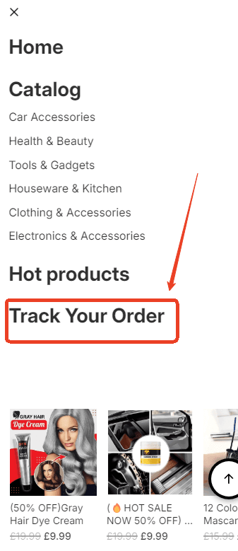 Select “Track your order” under the menu to access our store's free shipping tracking service.